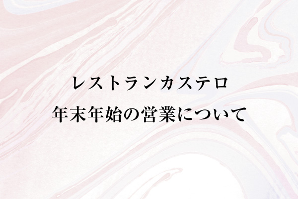 新年はレストランカステロの特別ディナーをお楽しみください。ディナー・飲み放題プランとステーキコースプランをご用意。